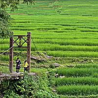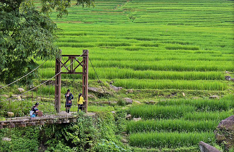 In het prachtige dal van Sapa(Vietnam) is de kleur van de groene rijstvelden schitterend