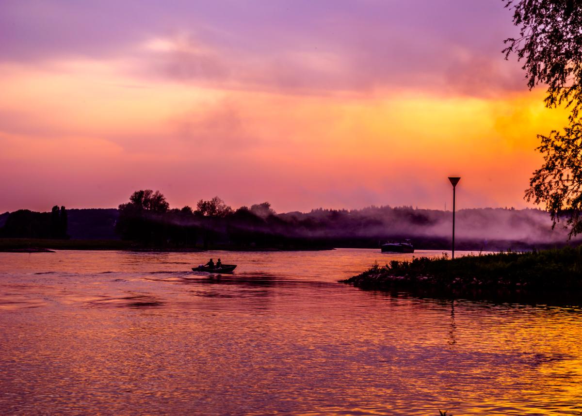 Rivier de Rijn met zonsondergang