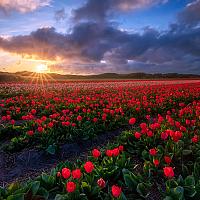 Rode Tulpen bij Den Hoorn op Texel tijdens zonsondergang, vorige gefotografeerd.