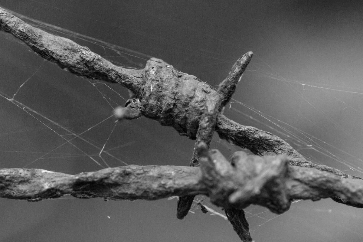 Bij Aquazoo Leeuwarden staat een oud hek met oud prikkeldraad.