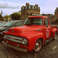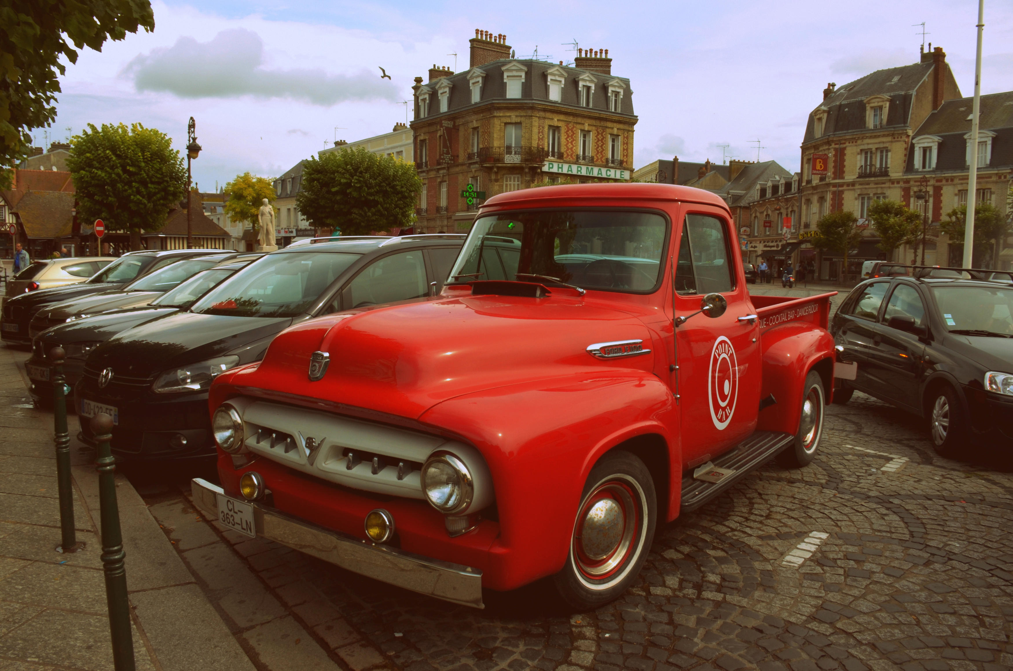 Rode auto in Deauville Frankrijk (bewerkte fotografie)