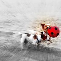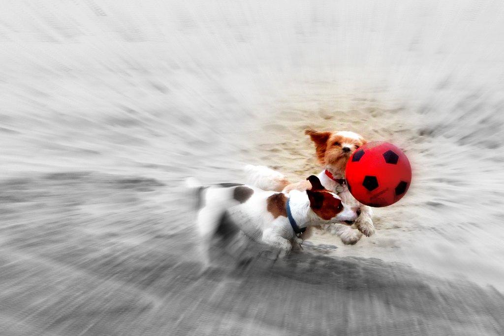 Mijn hond jeanny op het strand in blankenberge,België met een rode bal, niet zo makkelijk een bal in volle vlucht gevangen door een hond te fotograferen. Op het juiste moment afdrukken is de kunst, het effect bereikte ik met een online-app op de FLICKR-fotowebsite.