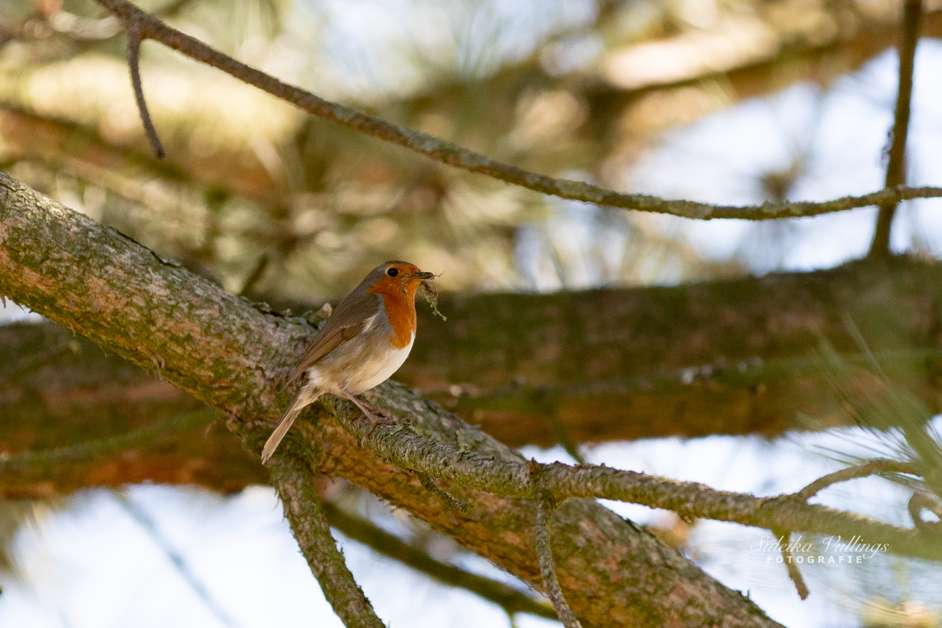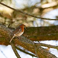 Roodborstje op takjesjacht