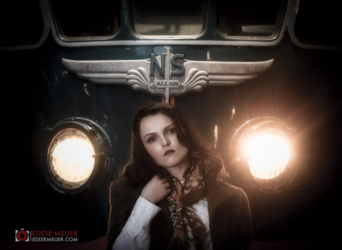 Foto uit een shoot met Rosalie in het spoorwegmuseum in Utrecht. Als externe flits is een Photix Indra 500 gebruikt.