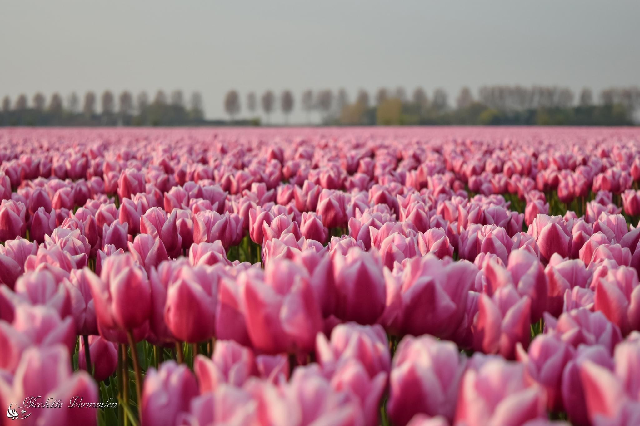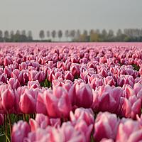 Roze tulpenveld op Goeree-Overflakkee in de omgeving van Herkingen.