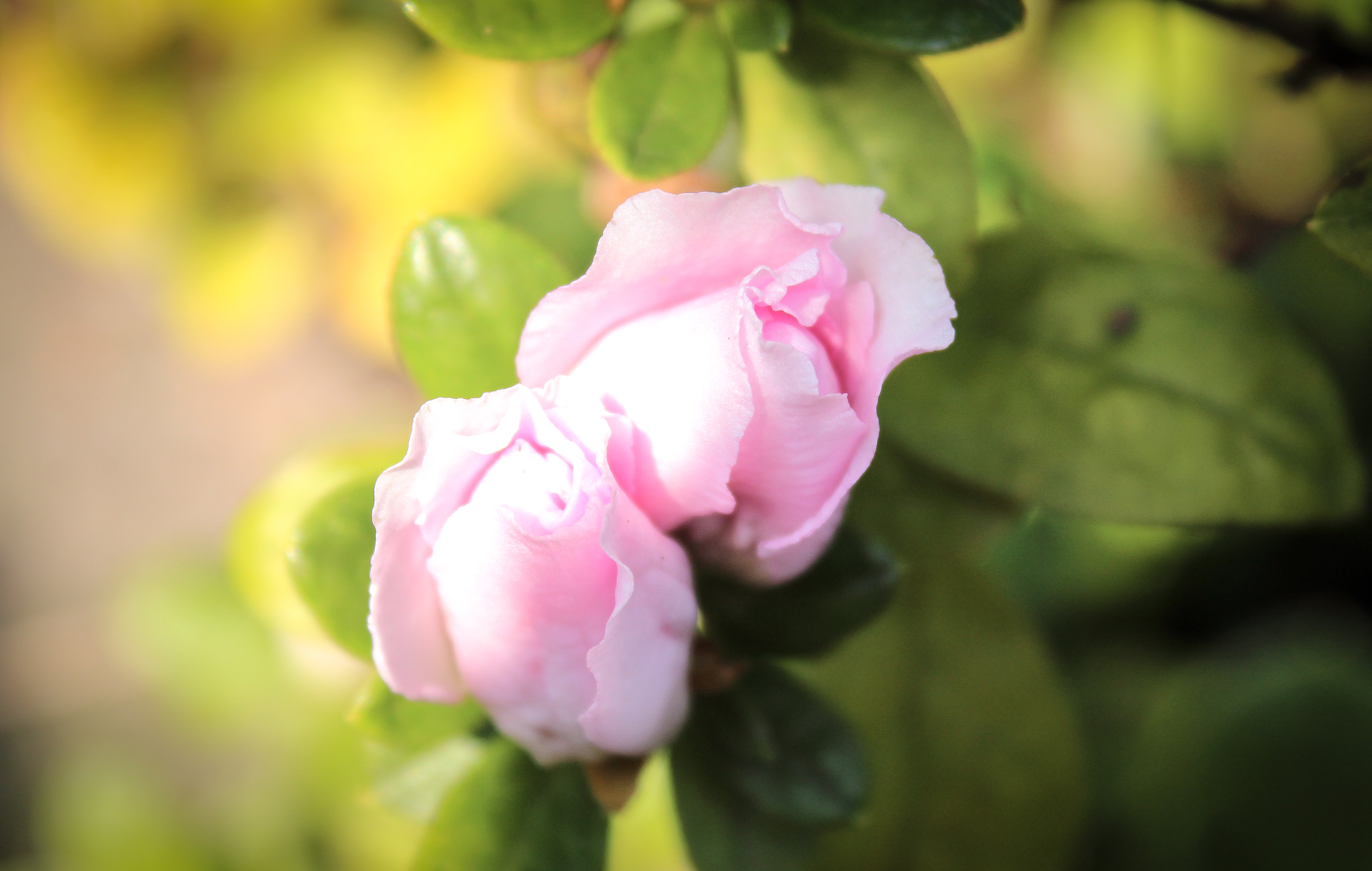 In onze tuin zijn de bloemen weer mooi volop aan het bloeien, zo ook onze rozenstruik. Deze twee zaten mooi naast elkaar in het zonnetje.