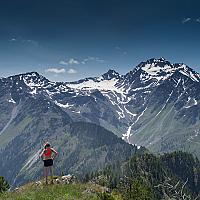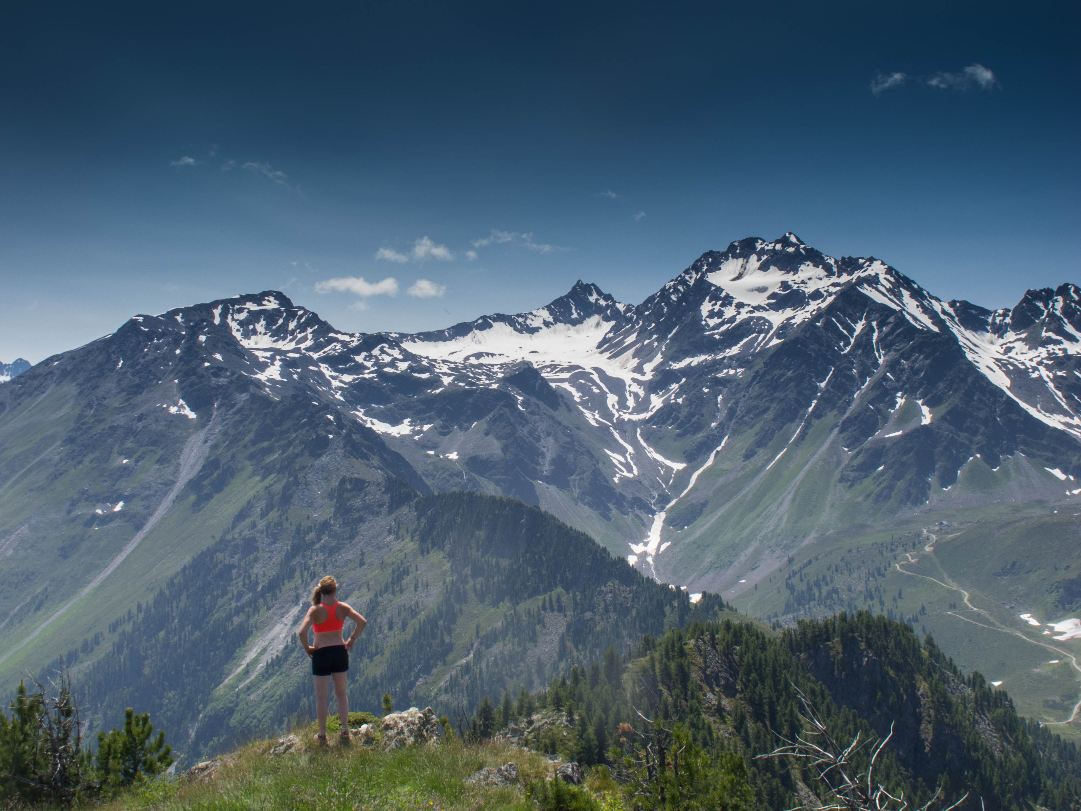 Ruby de Witte geniet van de Alpen na een flinke wandeling in Tirol.