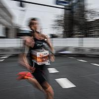 Een langere sluitertijd gebruikt om een aparte beweging van de persoon te krijgen. Niet pannen.