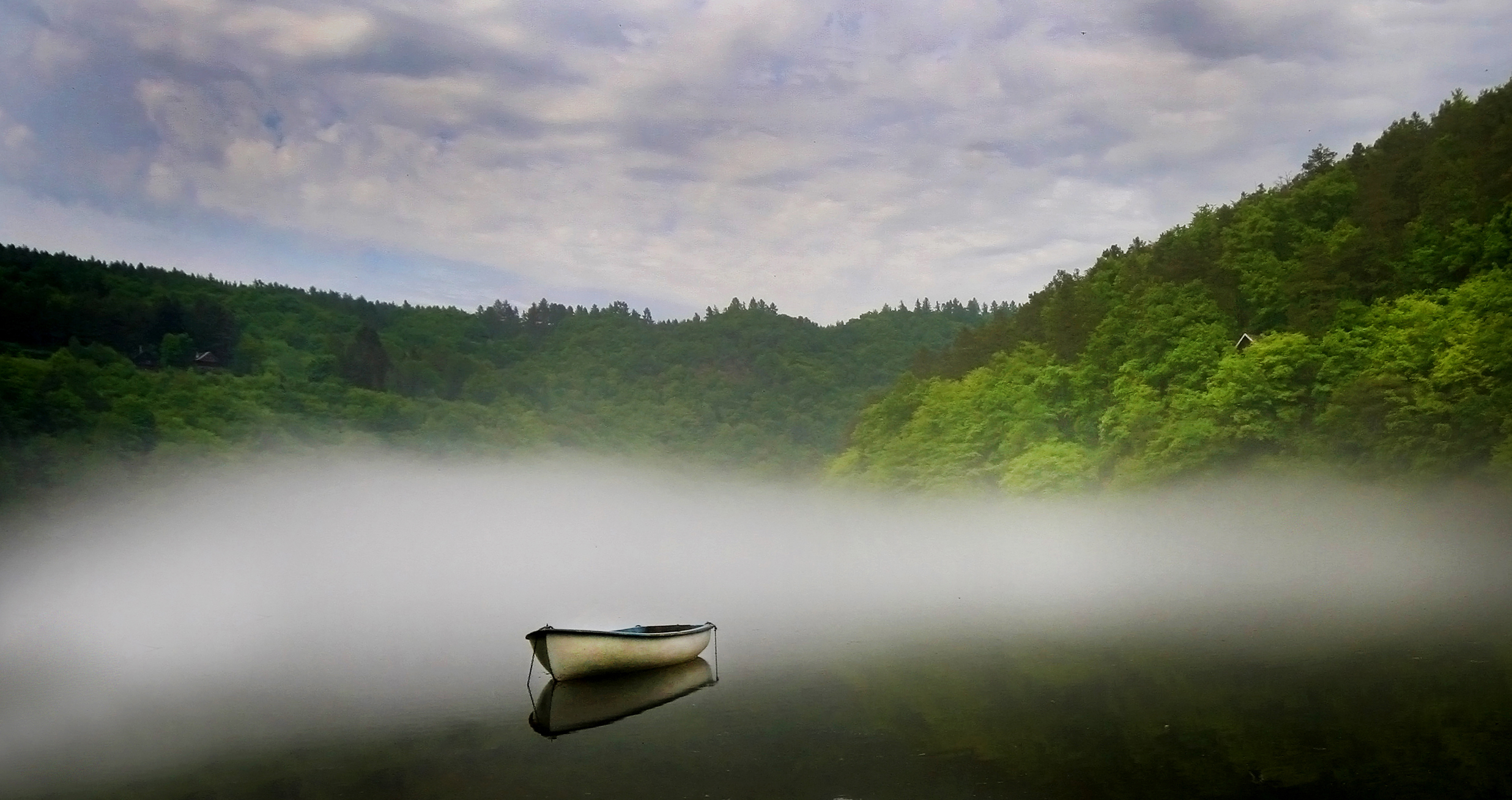 Tijdens een wandeling langs de rivier de Sazava in Tsjechie, kwam er naar een enorme regenbui een prachtige mist over het water te hangen.