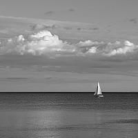 Kleurenfoto omgezet naar zwart/wit, gecropt en voor de lucht de burntool en de dogetool gebruikt.