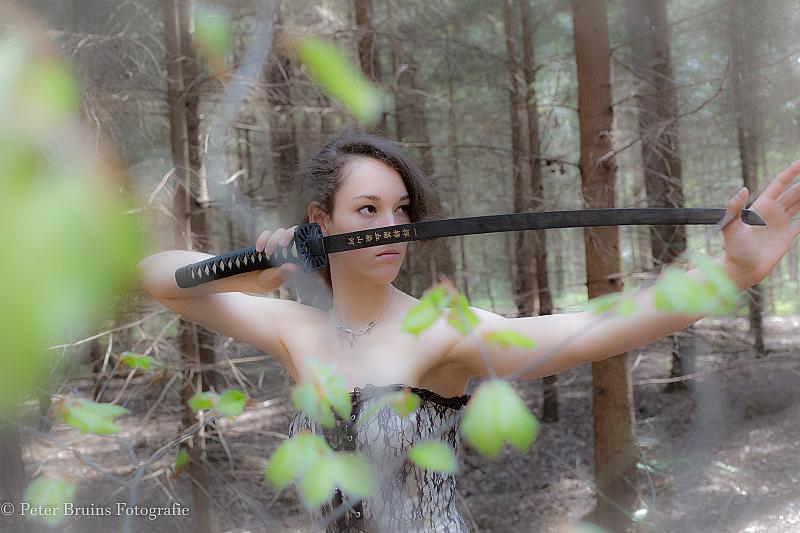 In de stijl van Japanse Anime heb ik dit model gefotografeerd in de bossen nabij Hoogeveen. De foto is via Lightroom verzacht om deze wat mysterieuzer te maken.