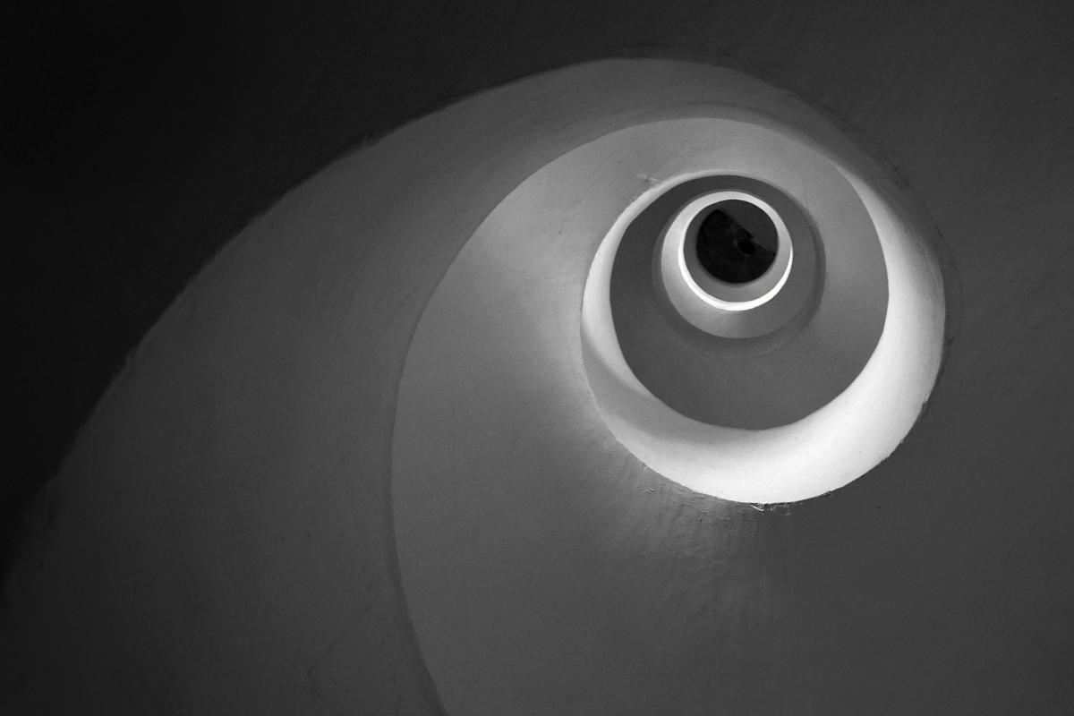 Valencia, wenteltrap van de toren van Iglesia de Santa Catalina, gezien van onder naar boven..