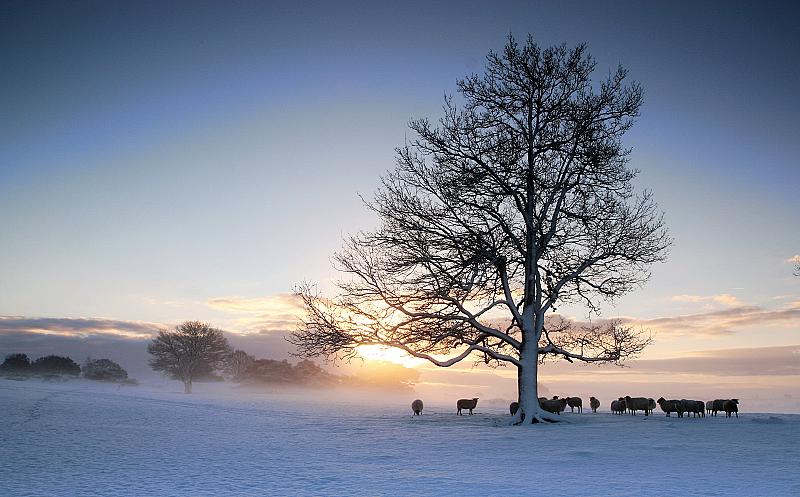 Schaapjes in winterlandschap