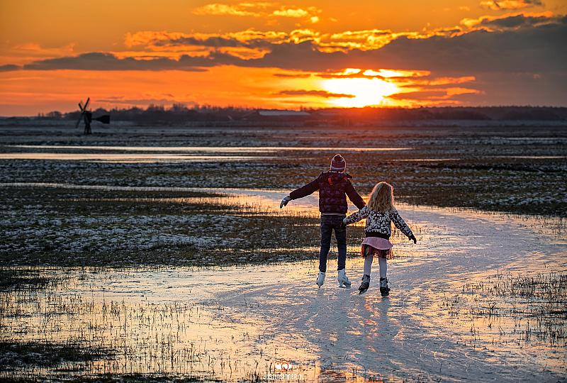 14-12-22 Schaatsen op natuurgebied WaalenBurg tijdens zonsondergang. Mooi Hollands plaatje met het molentje in de verte. #Texel #schaatsen #winter #justinsinner #canonnederland