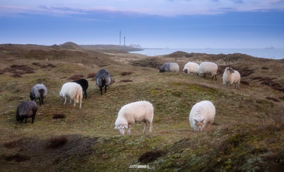 Schapen van Vrolijke schapen.nl grazen rond de Mokbaai op Texel. Beetje heiig, donker weer, lekkere sfeerplaat! #Texel #justinsinnerphotography #waddeneiland #schapen #mokbaai #duinen