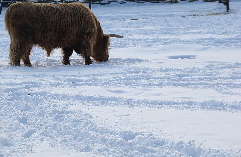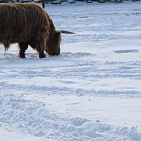 Schotse Hooglander in de sneeuw.