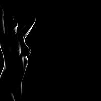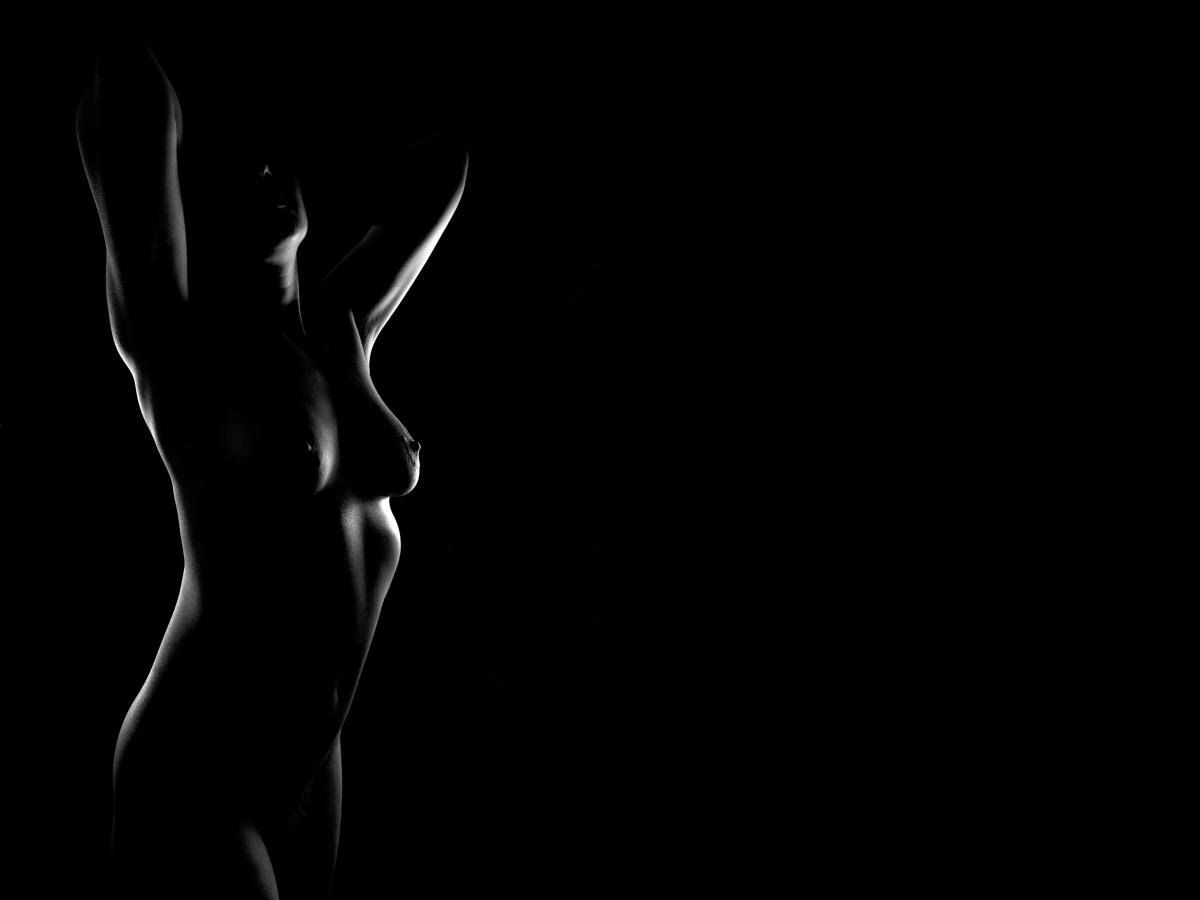 Low key silhouet van naakt model.