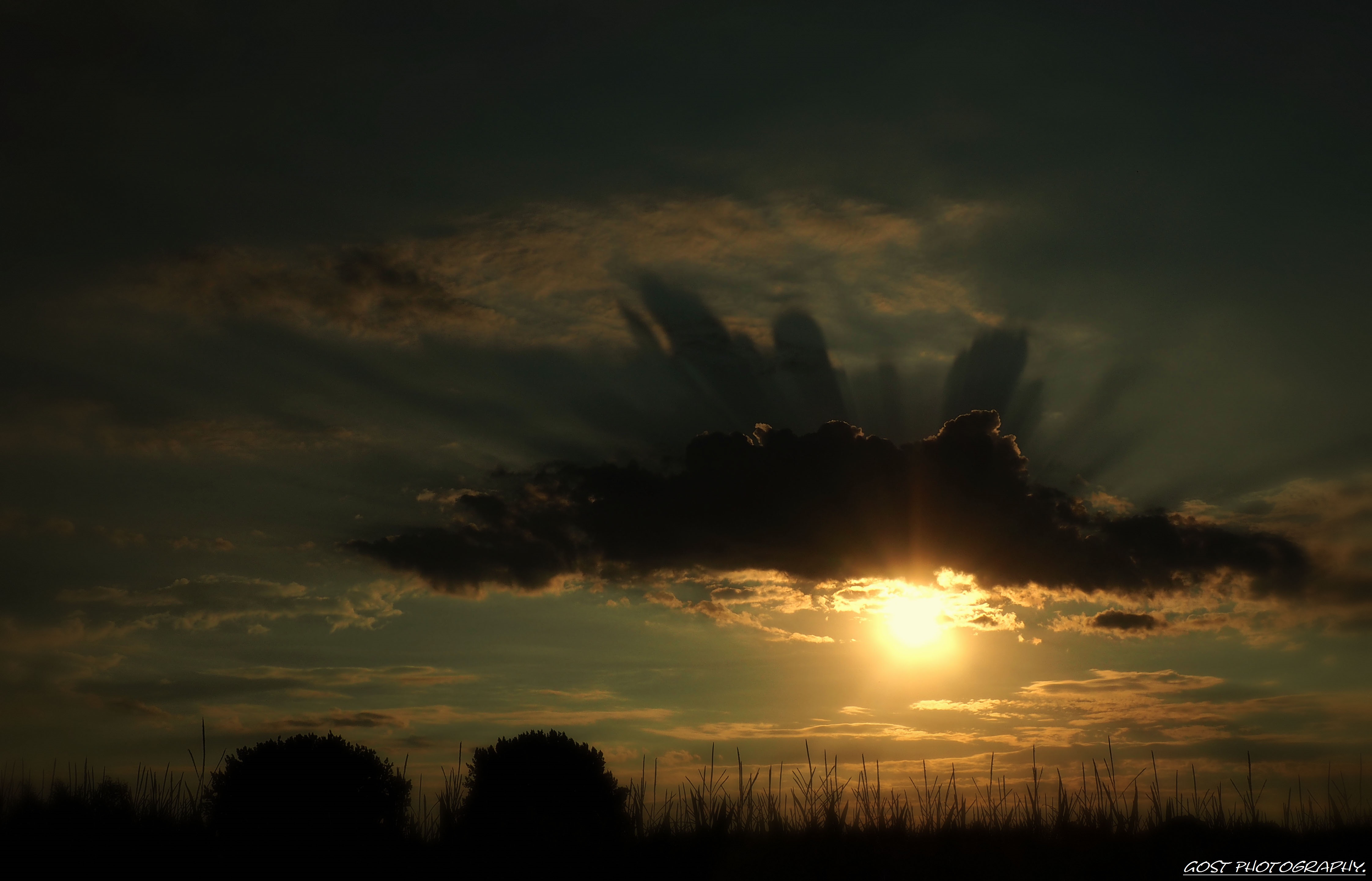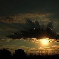 Weird natural phenomenon, the rising sun creates shadows of the clouds.