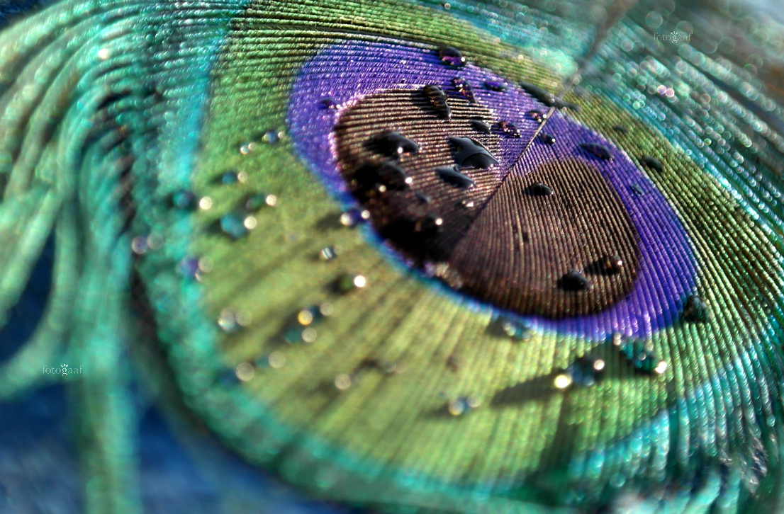 Wat geeft een pauwenveer toch een prachtige glans en kleuren in de late avondzon....
