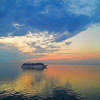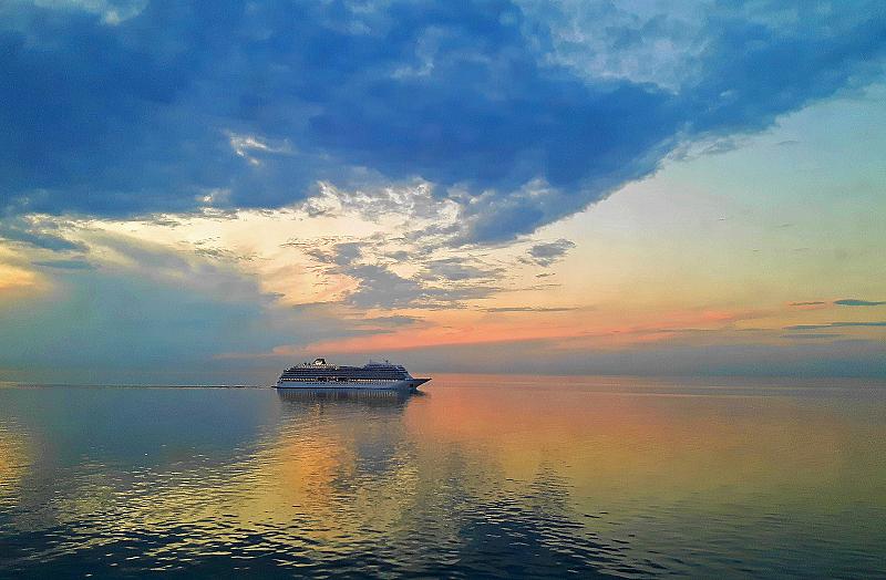 Passagiersschip 's nachts ter hoogte van Finland (mobiele fotografie)