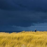 Donkere wolken boven de Noordzee, de laatste zonnestralen schijnen over het gele helmgras en het meisje dat net als ik staat te kijken naar de aanstormende buien. #texel #justinsinner #fotografie #waddeneiland #canonnederland