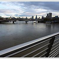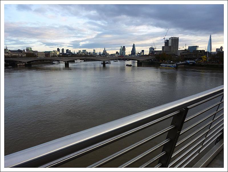 Gezien vanaf de Jubilee Bridge, uitzicht over de Thames en in de verte The Shard.