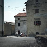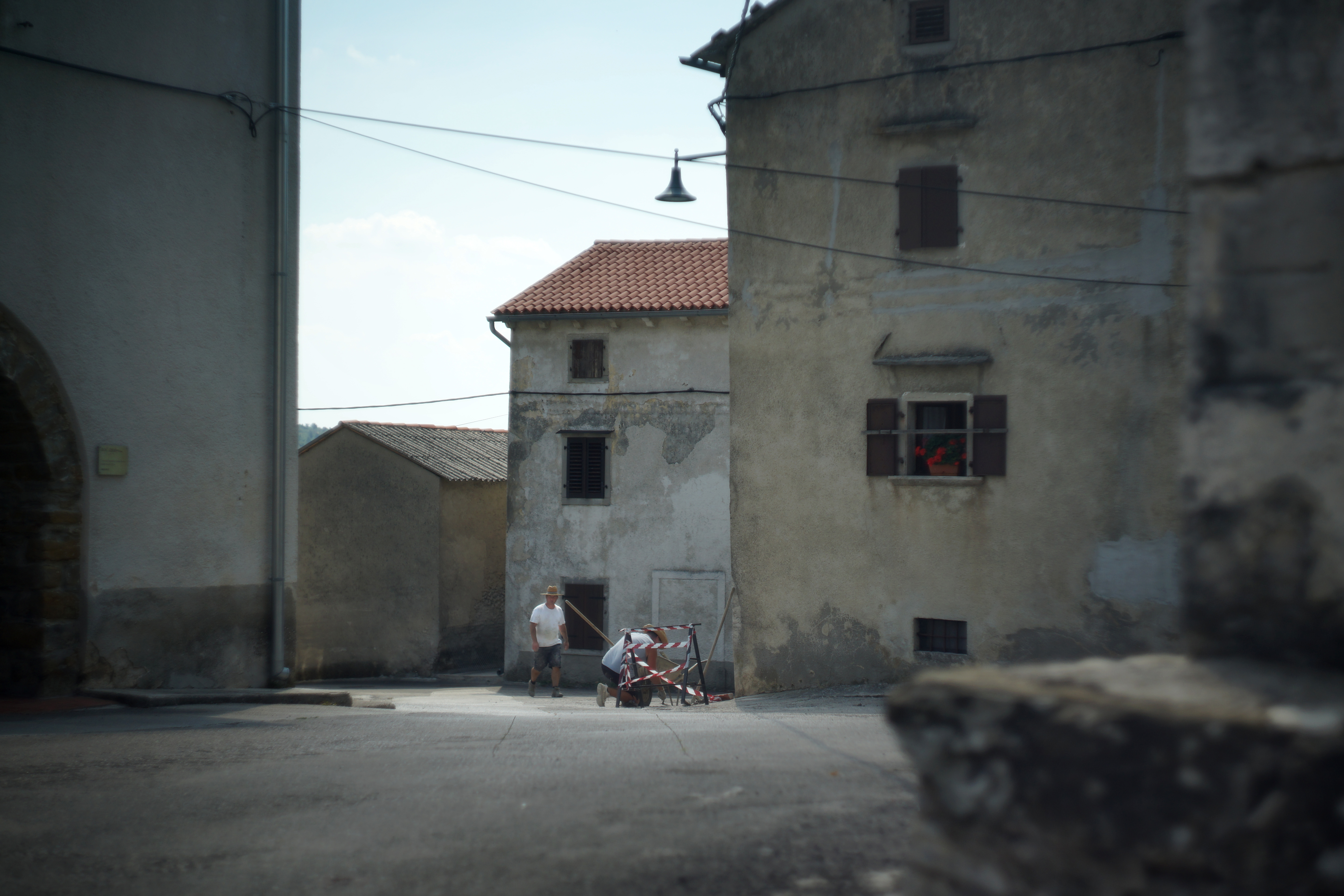 In een ogenschijnlijk verlaten dorp wordt er hard aan de weg gewerkt.