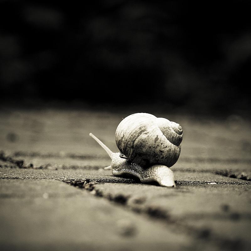 Genoeg tijd om scherp te stellen bij zo'n slak op reis...