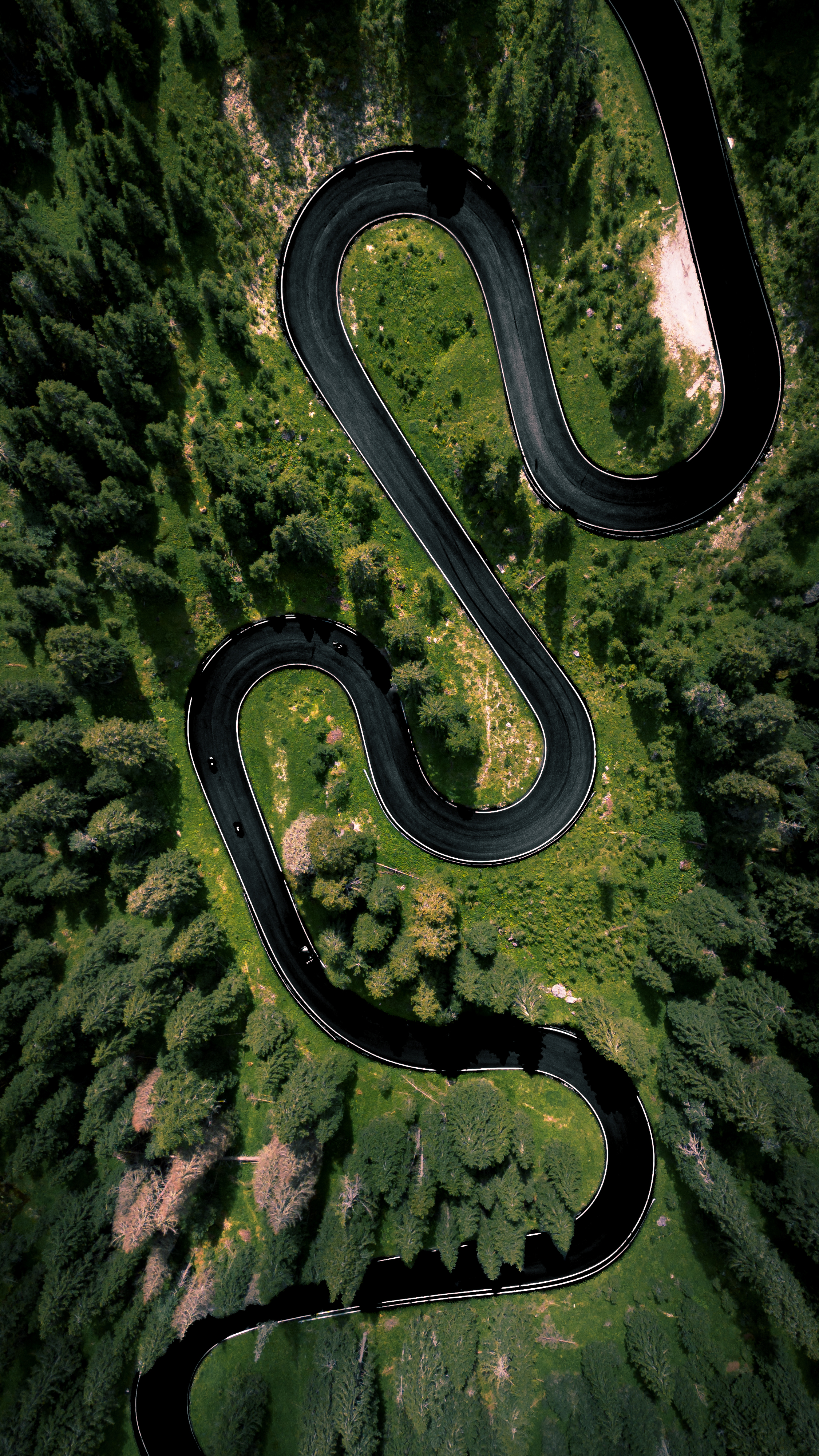 Dronefoto van de weg die bekend staat als 'Snake Road', Dolomieten, Italië. Deze locatie is de laatste jaren zeer populair onder dronefotografen en -videografen - en het behoeft geen uitleg waarom. Dit is een route die alleen al schitterend is om te volgen vanuit/vanop een voertuig, maar veel indrukwekkender is het zicht vanuit de lucht. Heb jij ook een drone en ben je van plan om naar het noorden van Italië af te reizen? Overweeg dan zeker om deze plek in jouw reisplanning op te nemen!