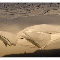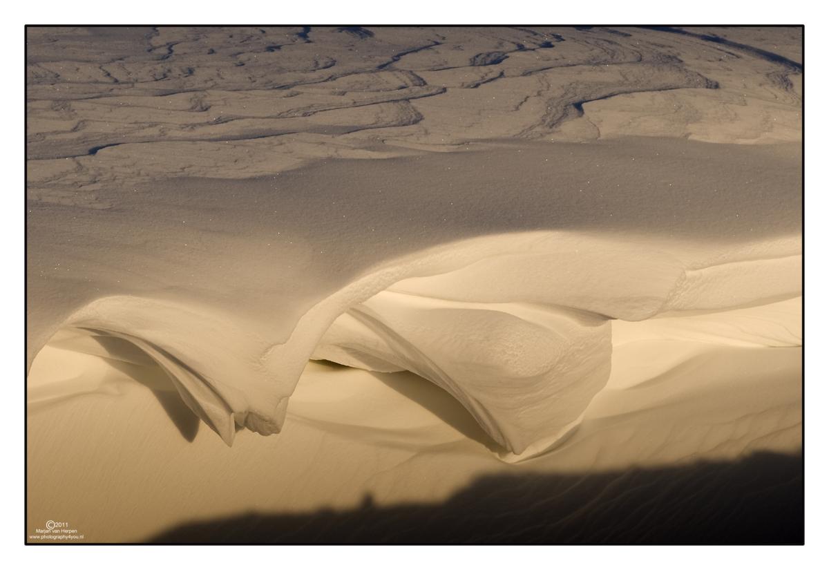 Patronen in de sneeuw ontstaan door de harde wind.