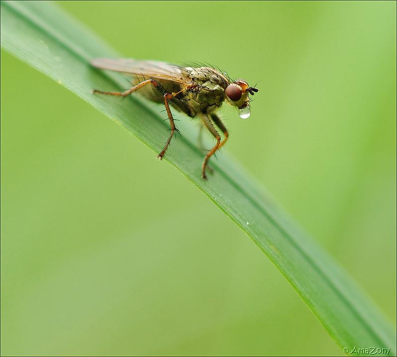 Bellenblazen, zeveren of toch n snottebel ? Wat is die vlieg nu eigenlijk aan het doen ?? Wel t' is speeksel ! Een vlieg spuugt op hetgeen ze wil eten en door het speeksel lost het voedsel op zodat ze't kan opzuigen. Boeiend, wonder der natuur, maar toch... bah !