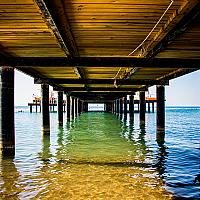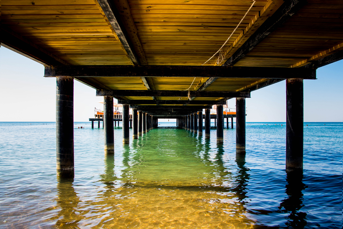 In een zonnig Turkije lagen de meeste mensen op de pier. Ik ben er onder gekropen. Gebukt om mijn hoofd niet te stoten en tot aan mijn knieën in het water. Maar het was het meer dan waard. Wat een helder water en wat een mooie kleuren.