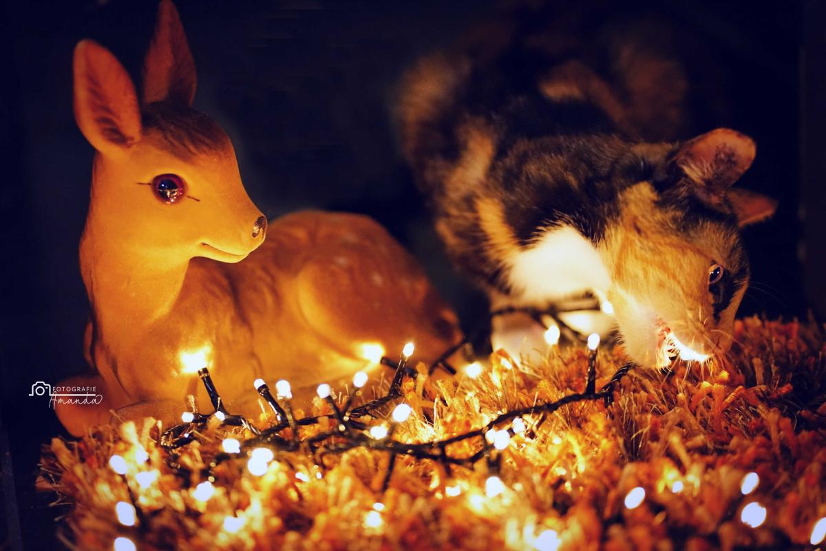 Onze kat houdt van kerstlampjes :)