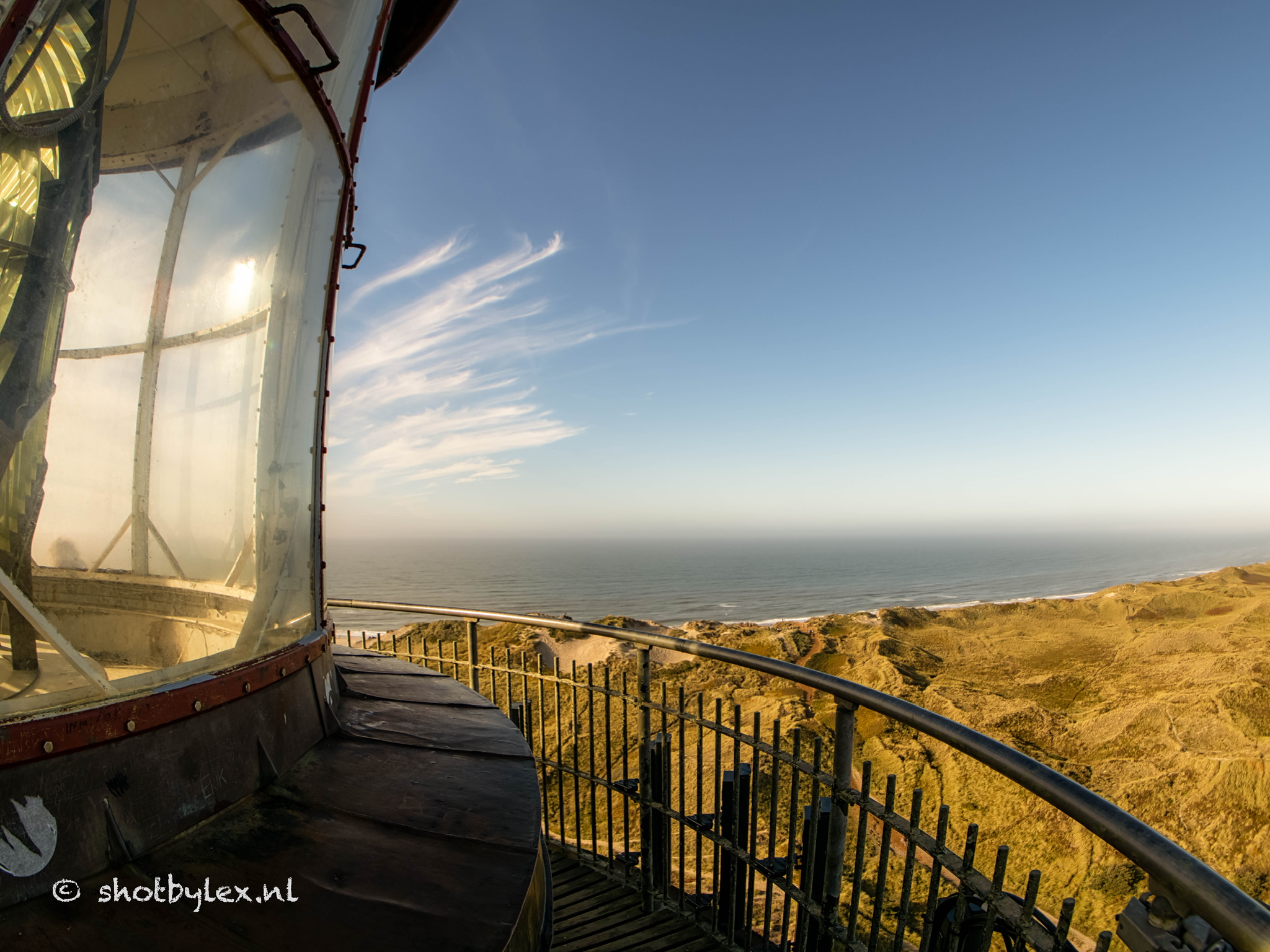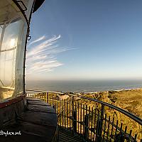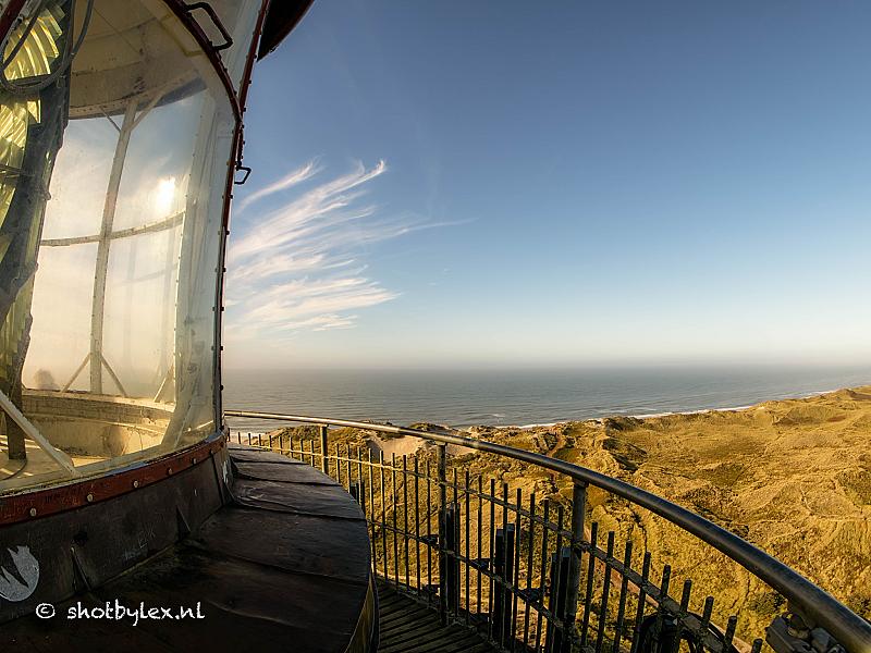 De vuurtoren van Hvide Sande, Denemarken. Het is een beste klom maar wat een mooi uitzicht en prachtig oud licht. Door een fish-eye lens te gebruiken kon ik de lamp en het uitzicht in 1 beeld krijgen.