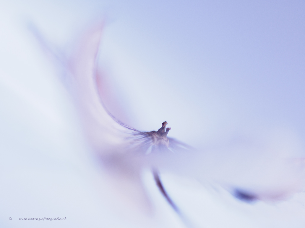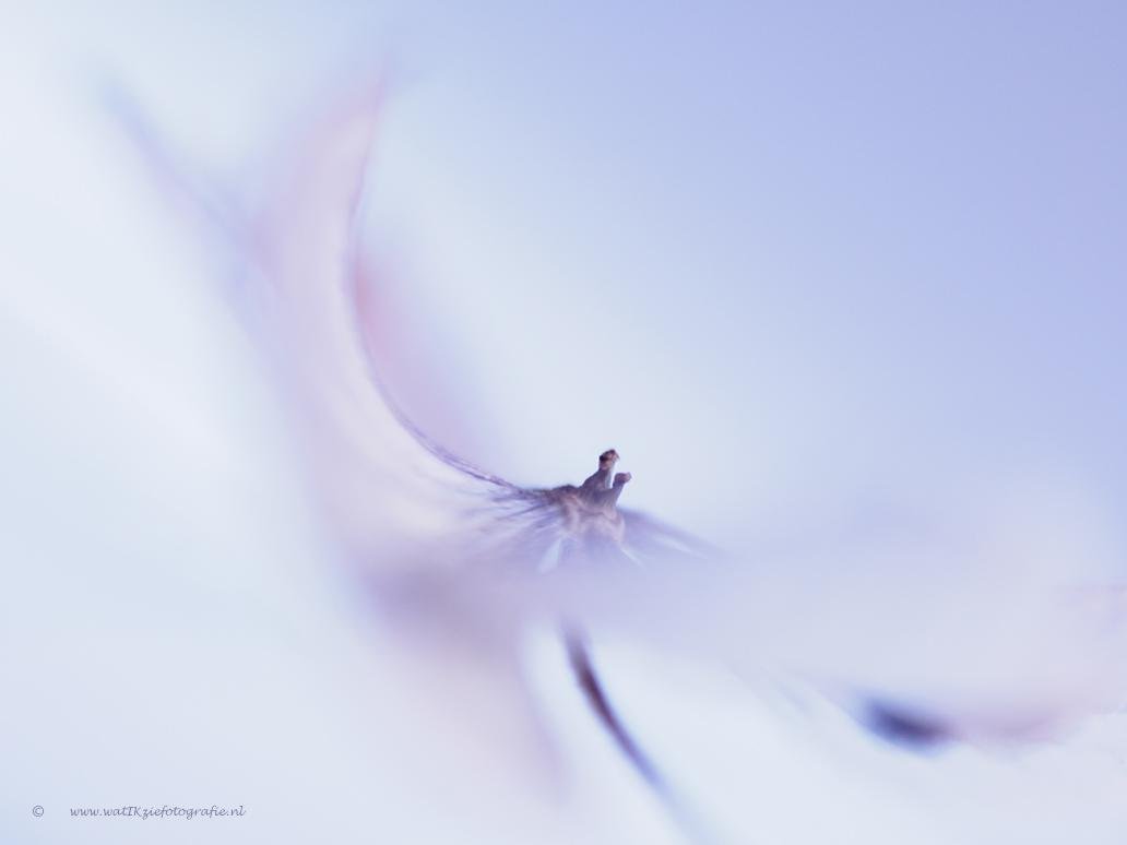 Deze foto is gemaakt met een macrovoorzetlens op de Edge 80 van Lensbaby. Ik was uit op een superzachte foto, met slechts een heel klein scherpte gebiedje, en verder zachte aquarelkleuren. Om de foto te maken die ik in mijn hoofd had, heb ik een heel klein hortensiabloempje gebruikt en wat ledlicht. Verder is er vrijwel niets aan de foto bewerkt.