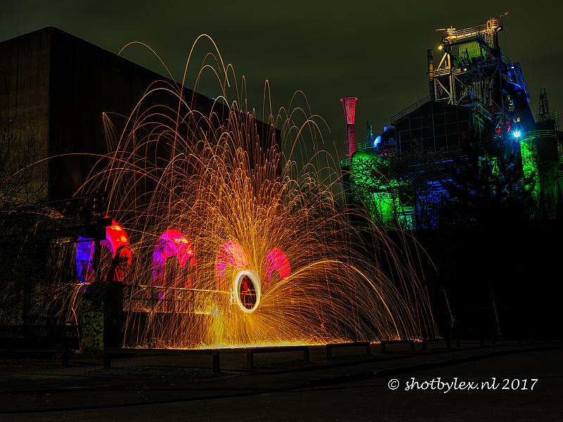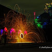 Brandend staalwol in het Landschaftspark Duisburg-Nord