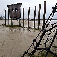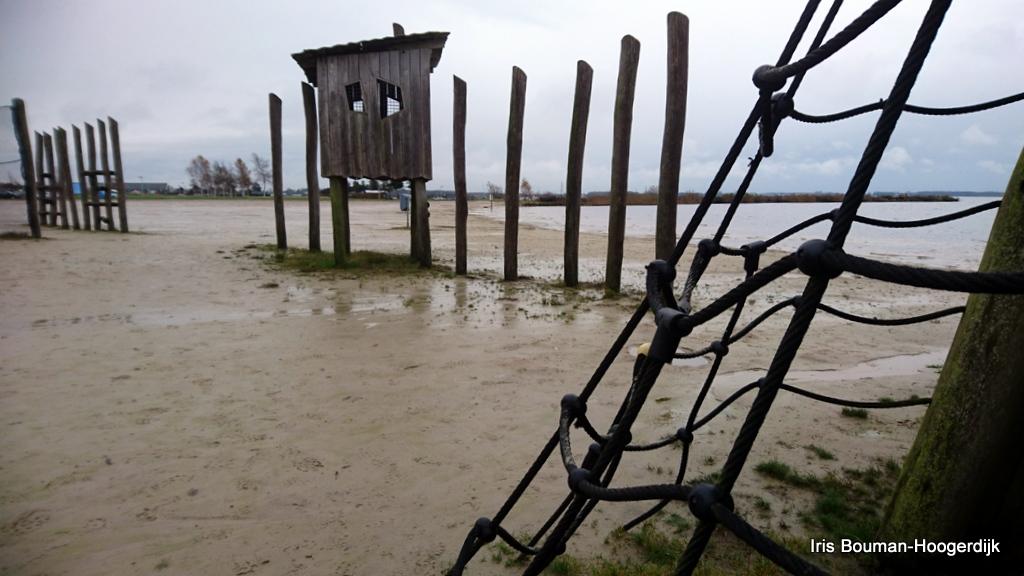 In de winter is het stil in de speeltuin bij het meer. Een enkele wandelaar, met hond, komt er nog wel. Maar verder... kaal en doods.