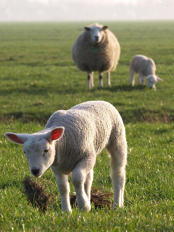 Lammetje is aan het spelen terwijl tante de fotografe in de gaten houdt