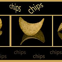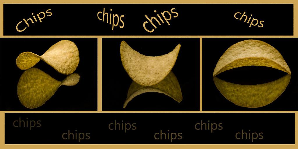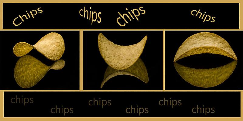 Inspiratie gevonden in de gewone Prigles-chips zwart papier onder een glasplaat dan krijg je weerspiegeling en in fotoshop de foto`s bij elkaar geplaatst.