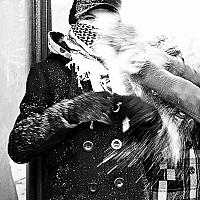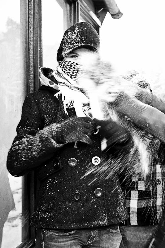 Juist op het moment van afdrukken werd ze belaagd door een grote hand sneeuw.
