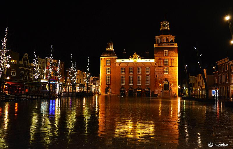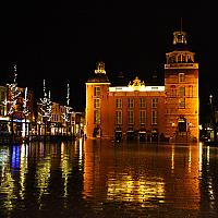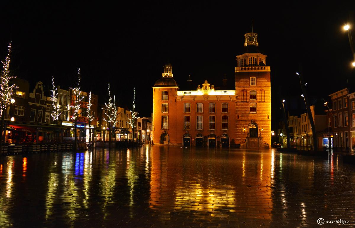 het historische gemeentehuis in Goes op een regenachtige zaterdagavond