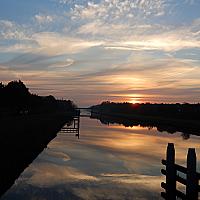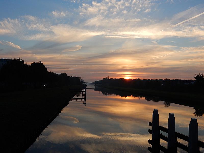 Perfecte reflectie van de zonsopkomst in het water van de Hoogeveense Vaart