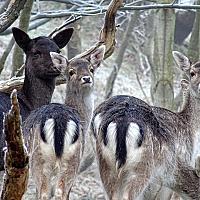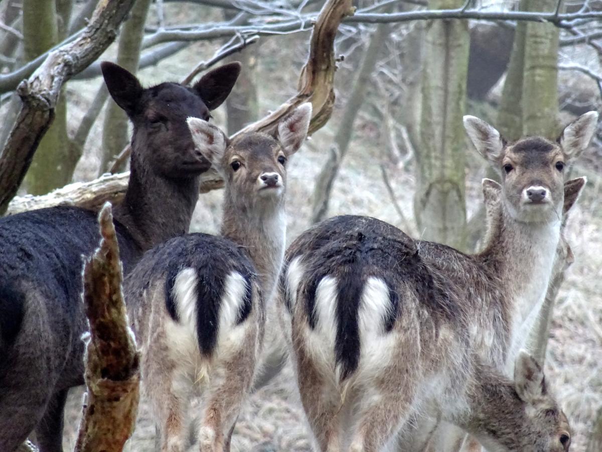 Hertjes op zoek naar eten na een nachtvorst, altijd een mooi moment als ze blijven staan in plaats van snel er vandoor te gaan.