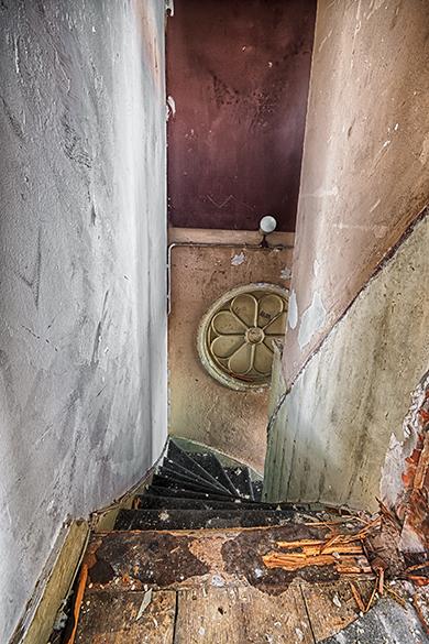 Net voor de sloop als je voor het laatst de trap af loopt met de wetenschap dat deze foto hierna nooit meer gemaakt kan worden