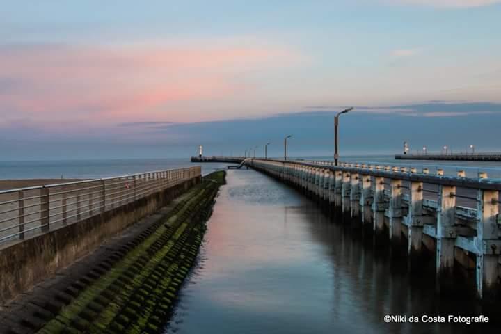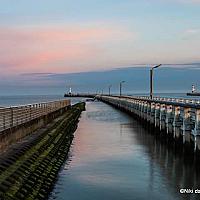 Staketsel Nieuwpoort bij zonsopgang