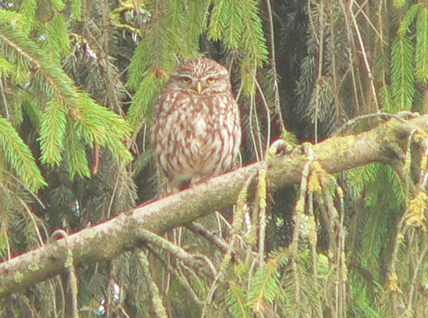 Het steenuiltje liet zich eindelijk eens zien.