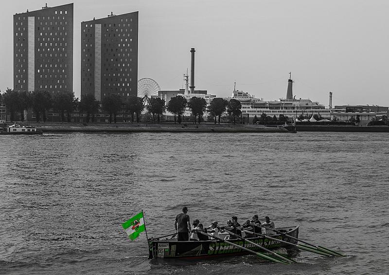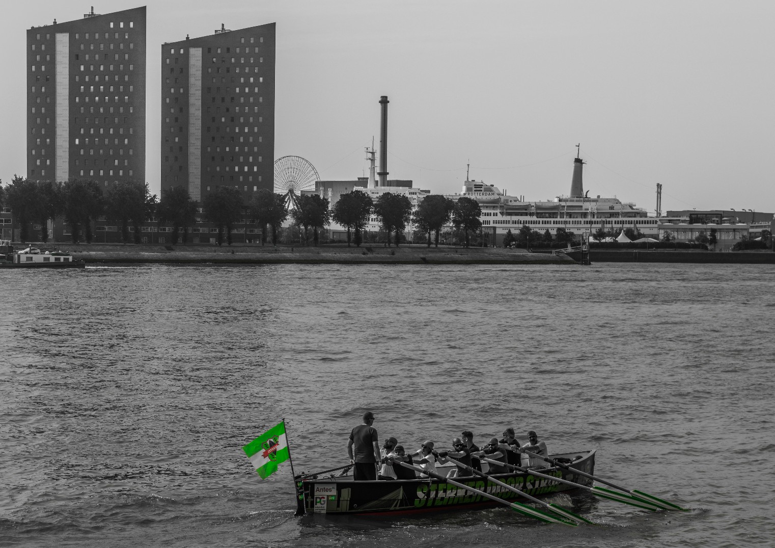 Enkel de kleuren rood en groen bij de roeiboot gelaten