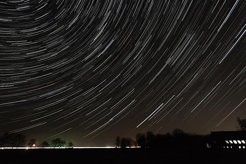 Een 2,5 uur foto's maken van elk 30 seconden om de beweging van de sterren vast te leggen.