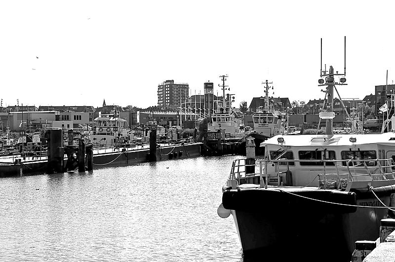 De vissershaven in IJmuiden op een stille zondagochtend en dan nog is er zoveel te zien. Hoewel in kleur gemaakt heb ik gekozen voor zwart/wit.