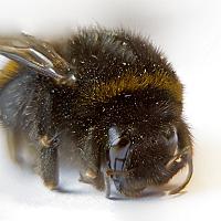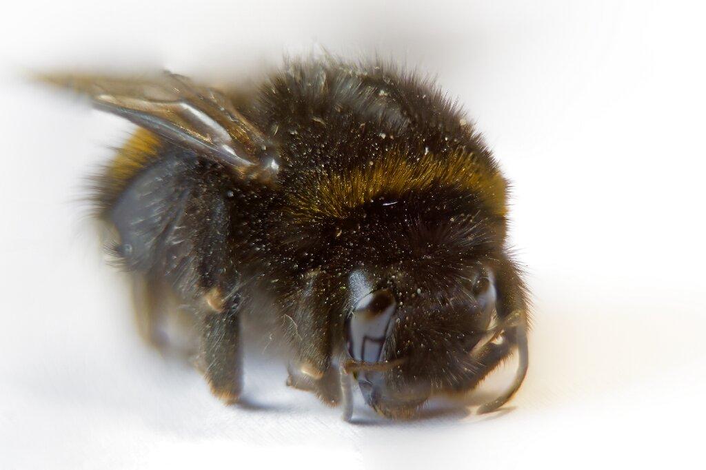 Stoffige hommel knabbelend aan een stuk papier ...